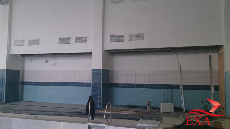 W ramach prac naszej firmy na basenie w Katowicach wykonaliśmy hydroizolację posadzek. Prace dotyczyły także montażu stolarki drzwiowej oraz układania płytek na ścianach, także na podłoże.